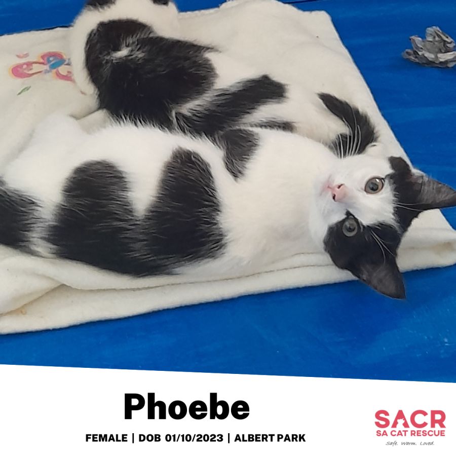 Phoebe’s adoption fee is $180 which includes desexing, microchipping, parasite prevention, and initial F3 vaccination.