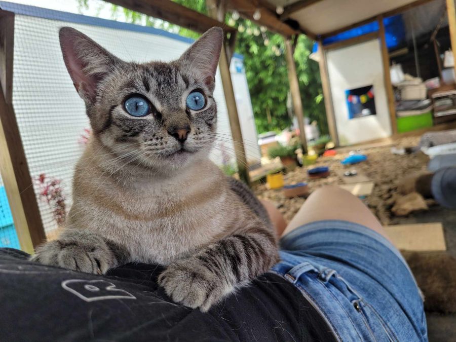 We believe Sookie to be a Lynx Point Siamese based on his striking physical features and gentle, loving nature. Keep in mind that like any cat, Sookie appreciates having his own space every now and then, as well as access to a quiet and comfortable area for sleeping and lounging.