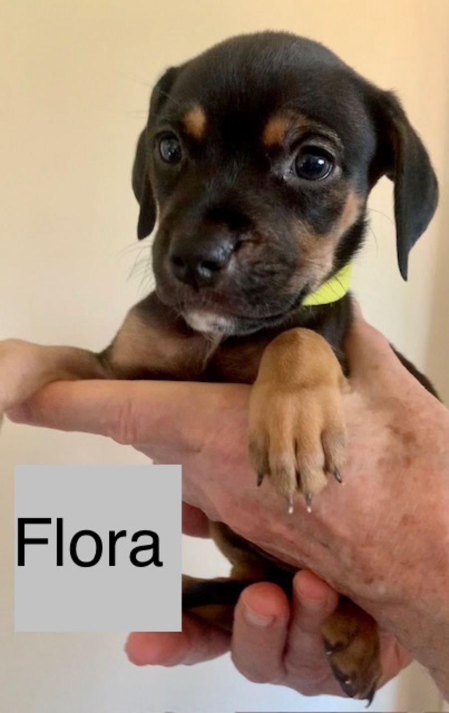 Sweet little Flora is an 8 week old mixed breed pooch who has found herself in Wally’s Doggie Rescue care along with her siblings.
