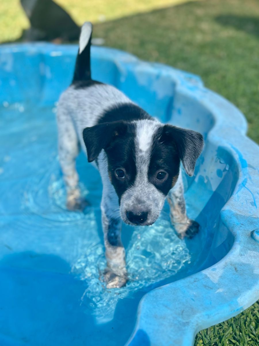 All pups are doing well with their toilet training, eating dry food and are enjoying water time and sleeping in a crate.
