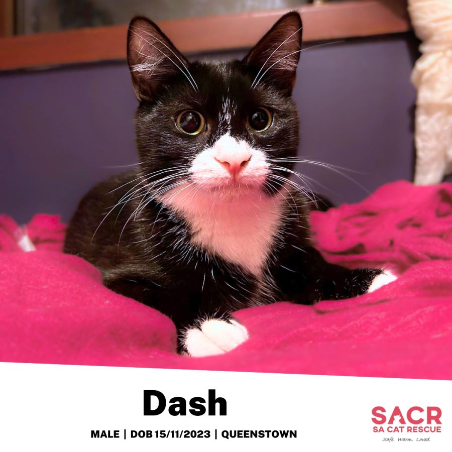 Dash’s adoption fee is $120 which includes desexing, microchipping, parasite prevention, and initial F3 vaccination.