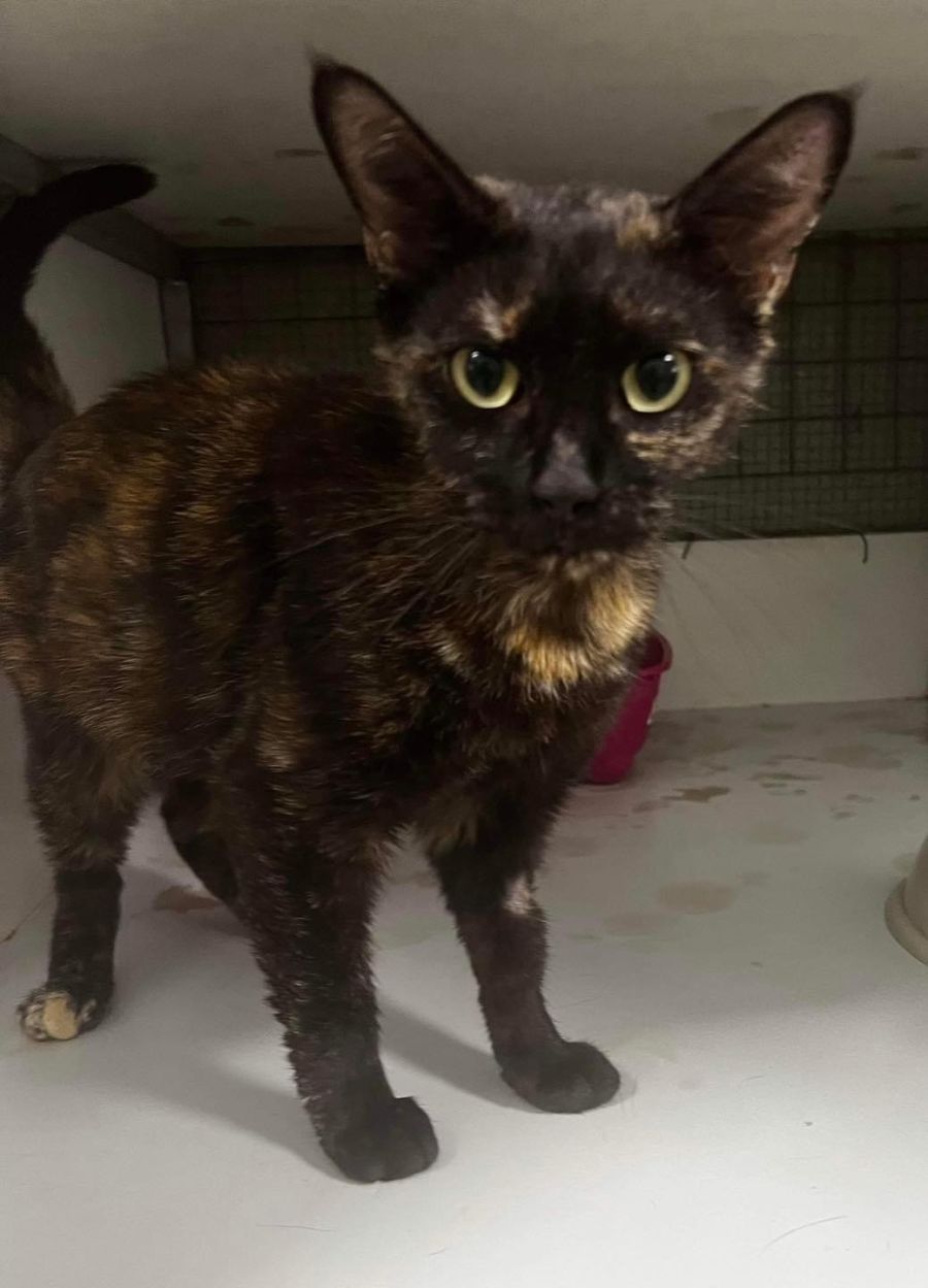 Gemma is 2 year old Torti who came to the shelter with her kittens and was never reclaimed. Her kittens are in the care of PMAWS and she is now ready for adoption. Gemma is a very sweet natured girl who loved affection. She is litter trained and appears to be social with the other cats in the cattery. She has started to gain some body condition however will try to eat you out of house and home at the moment as she is always on the hunt for food. Her adoption fee is $211 which includes desexing, microchipping, health check, vaccination, registration and worm and flea treatment. if you would like to meet Gemma contact the shelter on 65833488 thankyou.