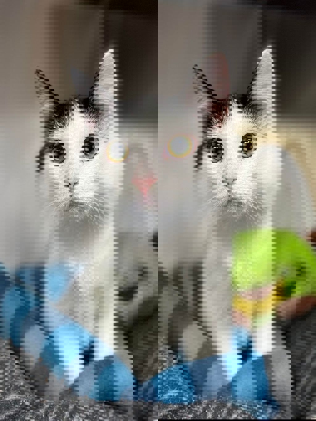 Introducing Bullet, a darling kitten bursting with sweetness and charm, ready to steal your heart. With a sociable demeanor and an irresistible face, Bullet is quick to make friends with anyone who crosses his path. His striking appearance is matched only by his playful spirit, as he eagerly bounds around, ready to pounce on any toy in sight.