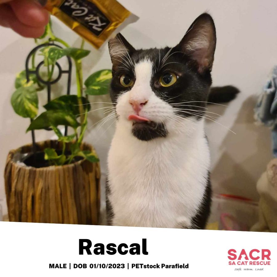 In all, Rascal is a super loving boy with a lot to offer. He has an endearing personality that blends the right amount of rambunctious energy with loving affection. His infectious charisma would be a joyful addition to any home ready to welcome this dashing tuxedo boy.