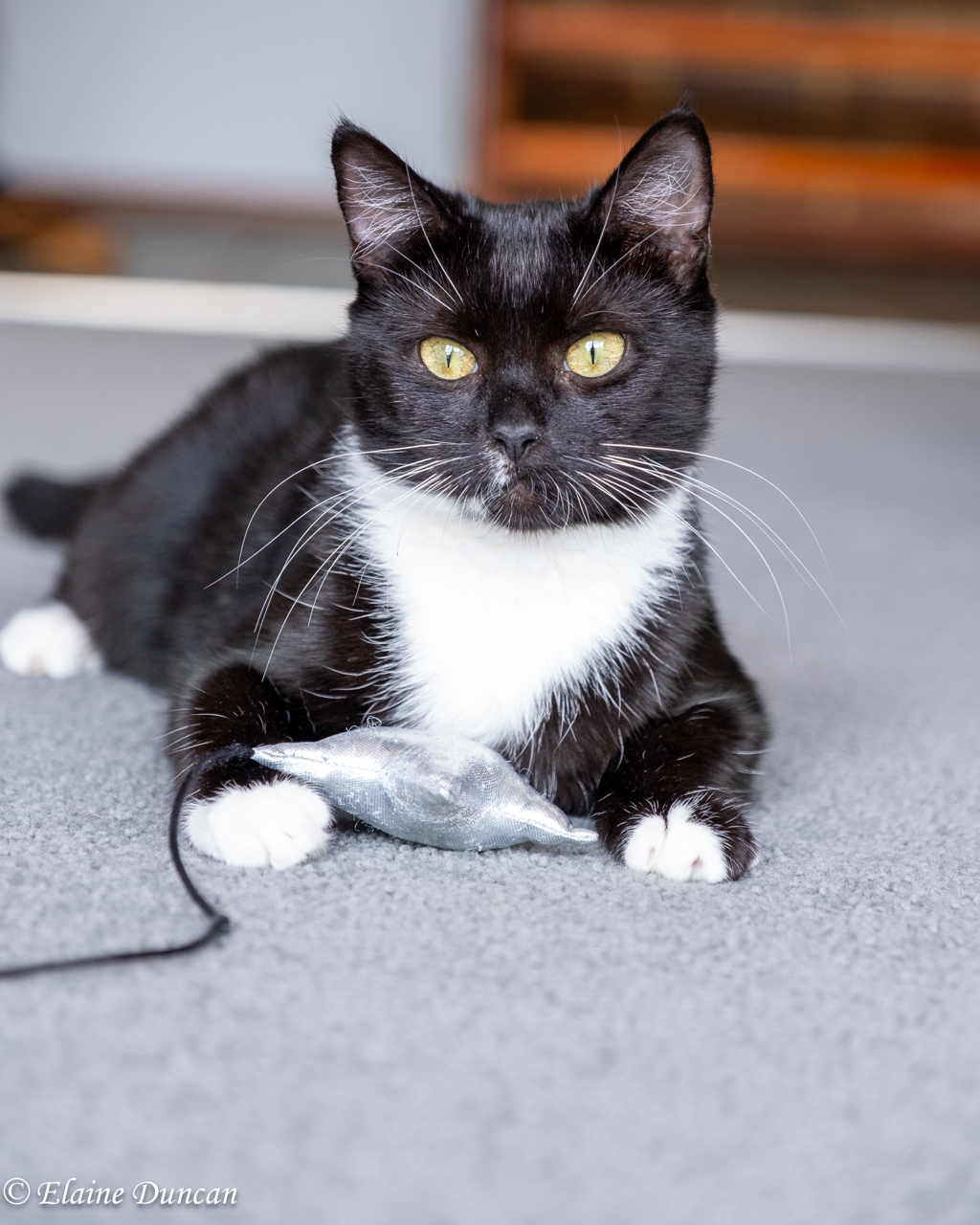 Aside from playing with her own tail, Miss Millie loves her cat toys like her little ball with a bell in it and a soft little whale toy, but she can also turn just about anything into a game, she especially loves a good old empty tissue box! However, she does have a rather hilarious tendency to be a bit clumsy, tripping over while zooming around corners and rarely landing on her feet when she jumps to catch a toy.