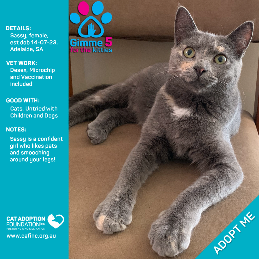 Donate to Sassy Just $50 Limited Time! at Cat Adoption Foundation Incorporated via Shout