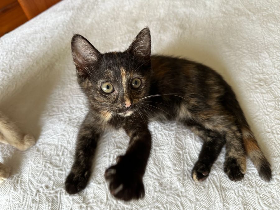 Gypsy is a sweet, purry kitten. She likes to play with the other foster kittens and sleep nearby people.