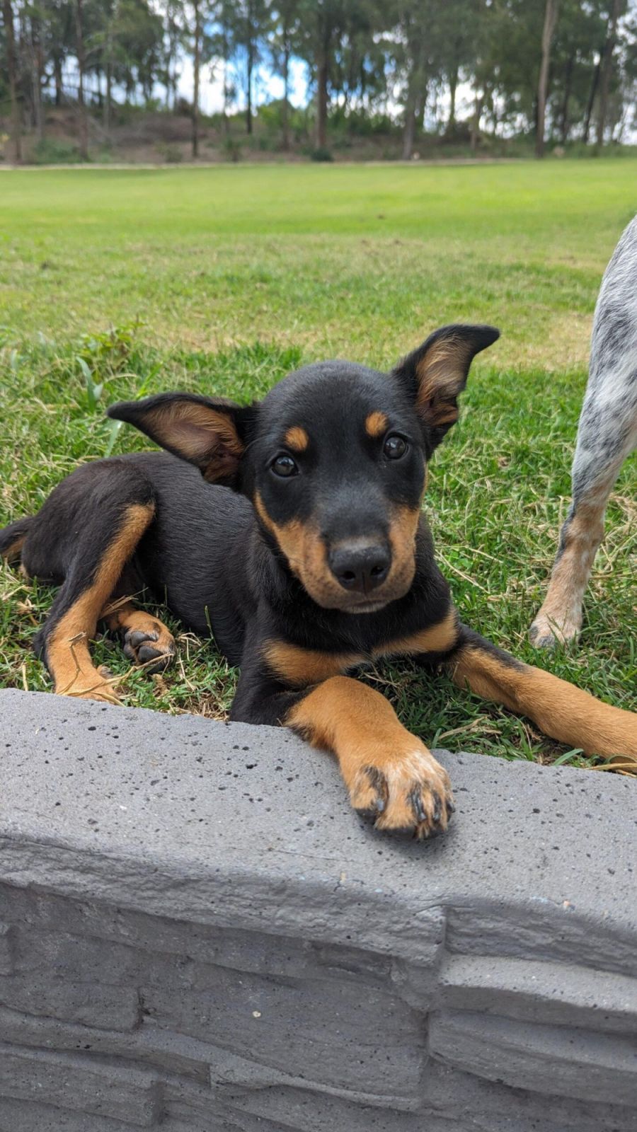 I can be shy to begin with but it doesn't take me long to come out of my shell and jump up for pats (my family is still working on my manners). I am half way through my crate training, I sleep through the whole night in there! Toilet training is still a work in progress, but I'm learning! I am happy to hang outside without my humans around and just lay with my doggy friends.