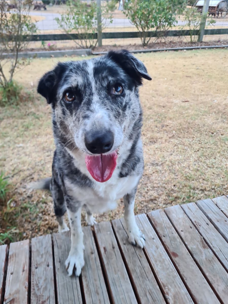 Patches is a six-year-old Koolie x Border Collie. She is currently staying in a home with other dogs and is getting on very well with them. She’s a very good natured lady, very friendly and full of the joy of life! This lovely girl is really gentle when walking on the lead, she knows her name and will come when called, loves to have a dip in the dam for a swim, and fills in a bit of time with her squeaky toys. Patches is the kind of girl who just wants to tag along with whatever you are doing.