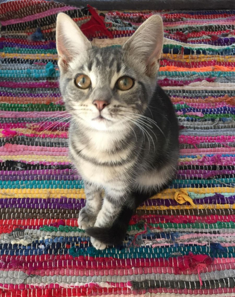 Striking a perfect balance between playful and poised, Daphne deals with everyone— humans and other four-legged friends—with grace. Canines, kitties, and humans alike, are all charmed by her engaging personality. Daphne is the cat that curiously observes you as you vacuum, and joyously chases the mop across the floor.
