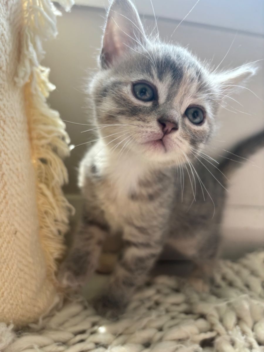 Mavis is one of a litter of seven gorgeous kittens. The kittens came into care with their mum, a beautiful ragdoll cross called Mimi. Mimi needed emergency, life-saving abdominal surgery just days after giving birth to her seven kittens. Mimi's owners needed some help with her post-operative care so mum and kittens have been living at the rescue whilst she recovers and her kittens grow. Fast forward six weeks and Mum and bubs are doing great! Each one of these seven gems is a little ball of fluff ready to be loved.