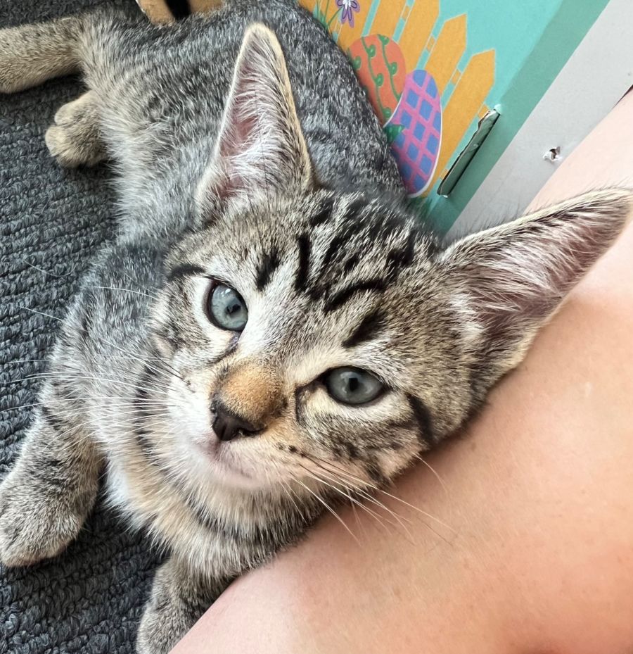 Introducing Arthur, one of our tabby twins! Arthur is a beacon of calm in a whirlwind world of kitten play. This young and handsome bundle of joy is the counterbalance to the wild antics of his twin, Arnie. A true lap cat, Arthur treasures any opportunity to crawl into a loving embrace, transforming any regular day into a precious moment of shared warmth, making him the perfect lap cat. He adores being picked up for cuddles and showers his human friends with feline affection. Being one of the quieter kittens among his siblings, he would be an excellent fit for a tranquil household where he can soak up all the love and attention he deserves.