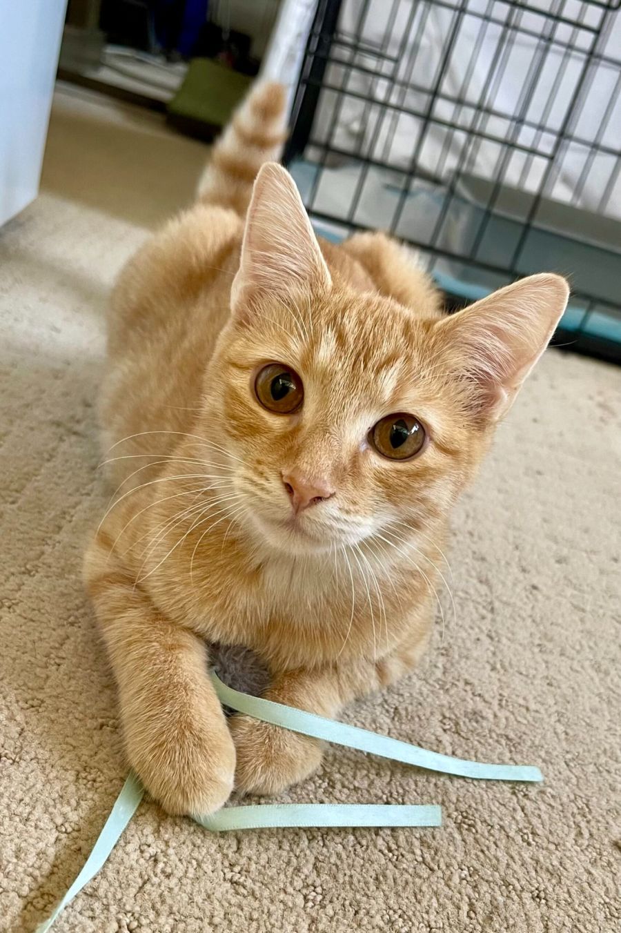 Paprika loves the foster carer’s resident cats and will head bop them or play chasies and lie next to them when they finished playing.