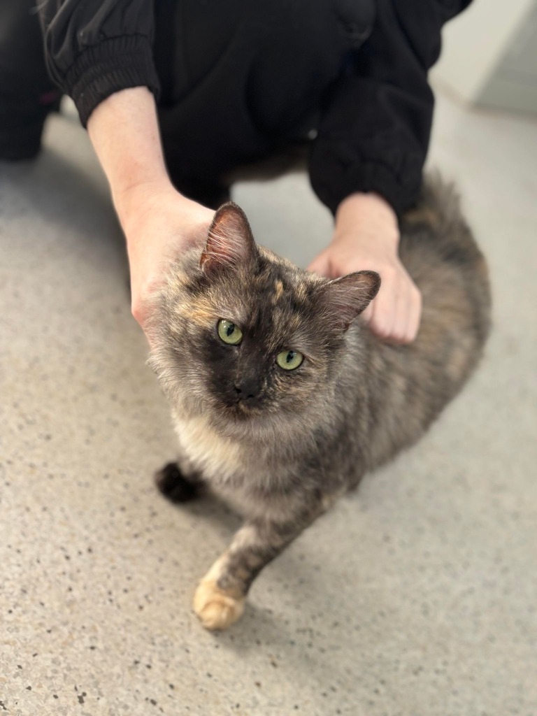 Chickpea is a vocal lady who loves to have a chat with you. A sure-fire way to win her over is a good scratch behind the ears (don’t tell her we told you that). She loves to roam and explore quietly and loves to just be near people. She does love to play, although it seems she is still learning how to do this, as she is still somewhat of a baby herself.