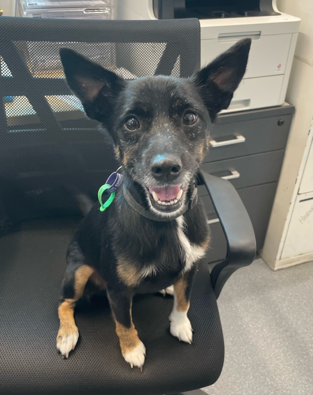 Being a terrier, he is smart, bursting with personality, playful & a delight to be around! He helps out at the shelter by sitting on laps in the office & letting staff know when the important things are due, such as dinner time & play-time!