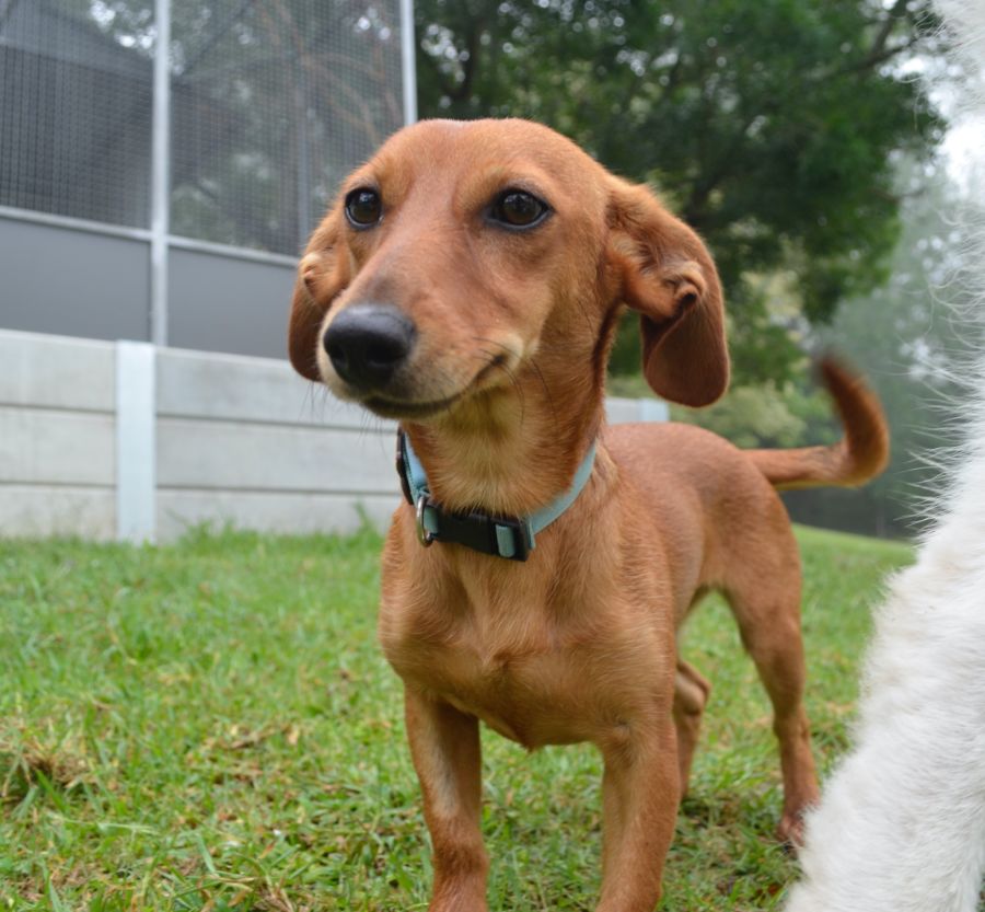 Lolly is pretty amazing. She is very intelligent, and walks super well on the lead. Since arriving, it's clear she loves kids! Anyone under 11 is met with lots of licks (no doubt she's been in a home before, where kids had sweet, sticky hands!) Like most small dogs, if a stranger comes at her she is not comfortable. This is something no dog has to deal with in my care, so a stern word telling people to let her come to them, and she is greeting them moments after with her waggy tail. She is only around 6kgs, and has the most adorable way of wrapping her tail around your lower back, while carrying her. It's like she's holding onto me with her tail. She loves other dogs, and has obviously not had any negative experiences, as she can be a little too much in their face. Like a lot of small dogs I've rescued, she acts like a puppy, and this allows her to get away with SO much from the big dogs. This includes stealing their bones, from their mouths, so her owner will need to be very in tune with other dogs to make sure she stays safe and doesn't learn the hard, traumatic way, that it is inappropriate. Whinnie has done some groundwork here, (thanks Whinnie). Lolly can get overwhelmed in a new setting, (ie; at a cafe, or picnic). However, if she's given space and time, she is able to bring her anxiety under control, and have a great time by the end of her outing. When she first arrived she was highly anxious travelling in a car, and would pant, scratch, shake and carry on. It only took a couple of trips, and now she loves the car! Lolly learns quickly, she understands there are some thresholds you can't cross (ie, not allowed in the bunny room, she will stand with the other dogs looking in, but her paws remain on the "line"). She knows to sit for her dinner, wait, and look at my face and not the food while I put it down, until I give her the "ok". Likewise, she knows how to sit and wait until I tell her to "come". Previous to this, she was such a bouncy, wiggly pup, but shows a great ability to practice self control when she needs to. She is a big foodie! No need to mash up the veggies to mix with the mince for this pup, she is very appreciative of my cooking and is thrilled to have discovered vegetables such as brussel sprouts, capsicums, peas, etc. She also enjoys a cube of watermelon, and has even eaten a stray leaf of lettuce on a picnic. She is not fussy. Due to this, careful attention must be given to ensuring she doesn't become overweight. It is concerning how many visitors to the shelter have mentioned her being "skinny". She's not skinny, she is long. She's out of proportion, but has a great covering over her ribs, and should not lose her "waist". Failure to keep her in good condition and allowing her to become obese will seriously affect her health, being a sausage dog. Just imagine her with longer legs, and you'll see. She's not skinny. Lolly gets along well with all the animals at the shelter, and has every potential of being in a household with pocket pets or cats, given the right direction and supervision. She is well behaved, during her supervised and off-lead time with the chickens. it takes a minimum of 6 months to correctly introduce any dog to other animals, so I'll never rehome a dog saying they'll be fine with your bunny or cat. It is up to the owner, all I can say is the potential for her is there. She is also wonderful with getting her nails trimmed. She likes to stay pretty.