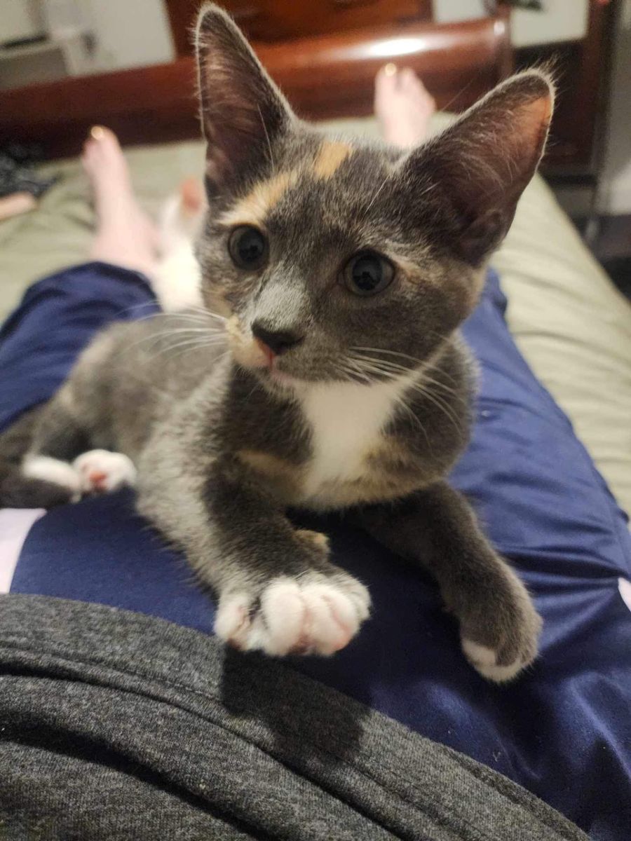 Ziggy is a gorgeous calico and was rescued from a farm with her 2 brothers, Igloo and Mo. She is a confident and playful kitty who will require lots of attention and stimulation. Lots of toys is a must to keep her entertained.