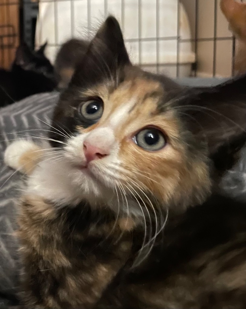 Roisin, this big little lady is a little thorny and a little bossy and a whole lot lovely. Much bigger than her brothers, Roisin is definitely the confident type who will be in charge of all furrever family members. She loves a play but has the confidence to be a solo kitty.