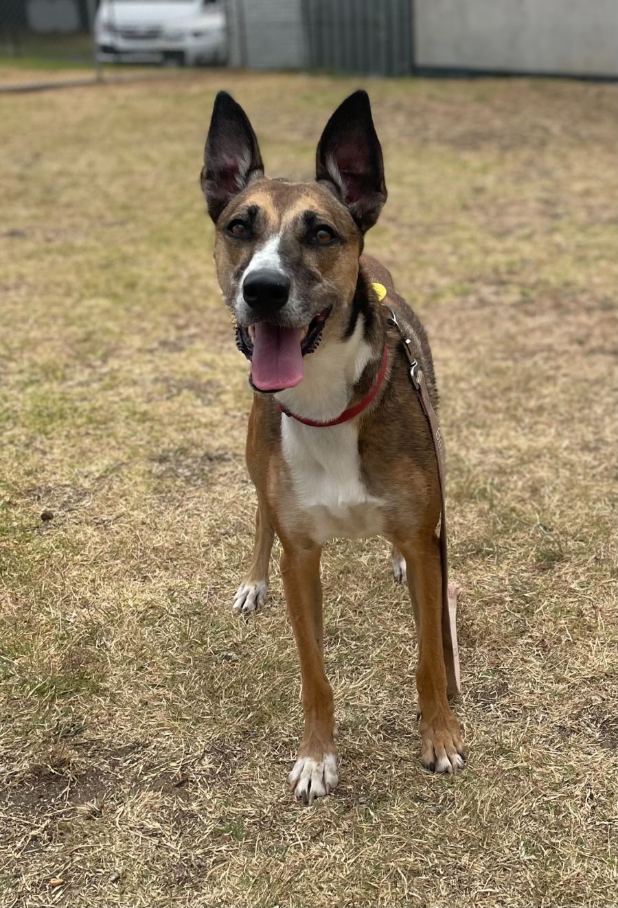 Skye is a confident, friendly and energetic Kelpie mix. She loves people and is happy to follow you around everywhere! Skye has some basic training, and has proven to be quite a well mannered girl while staying at GAWS. Skye is dog friendly and would best suit a home with a calm male dog to explore with, not being a rough player. Skye may suit a family with dog savvy kids, but is not recommended to be rehomed with any cats or pocket pets.