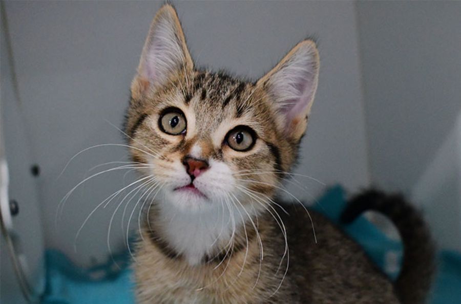 He should be fed kitten food multiple times a day to ensure that she grow up big and strong too!