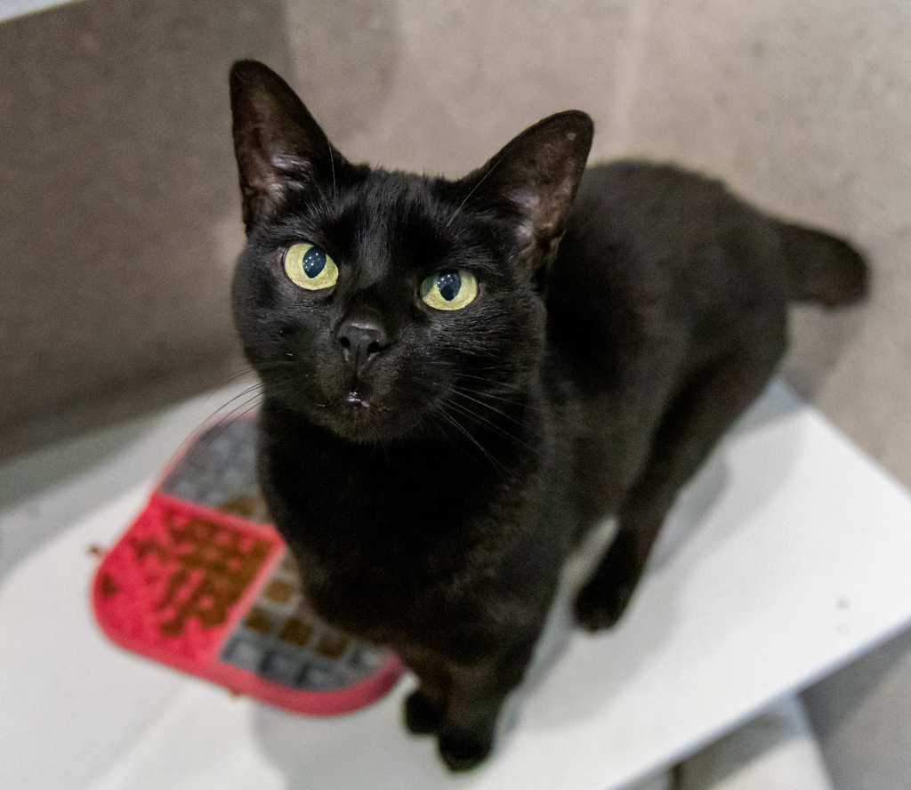 Meet Tsuki, the sassy black cat with a personality as bold as her sleek coat. This feline sensation came into care a bit underweight and unsure of people, but she's undergone a stunning transformation. Now, Tsuki confidently struts her stuff around the cattery, a true queen in her own right.
