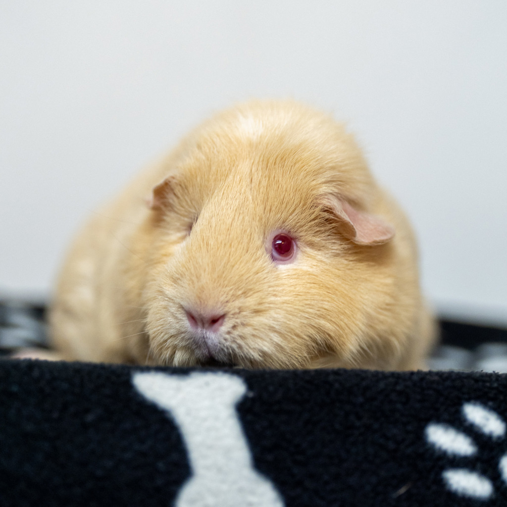 A home with space for her and her bonded friend, Spotty, to roam and explore with plenty of hiding spots would be ideal. Squeaky's new family should be committed to continuing managing her weight, which includes providing a balanced diet and regular exercise opportunities.