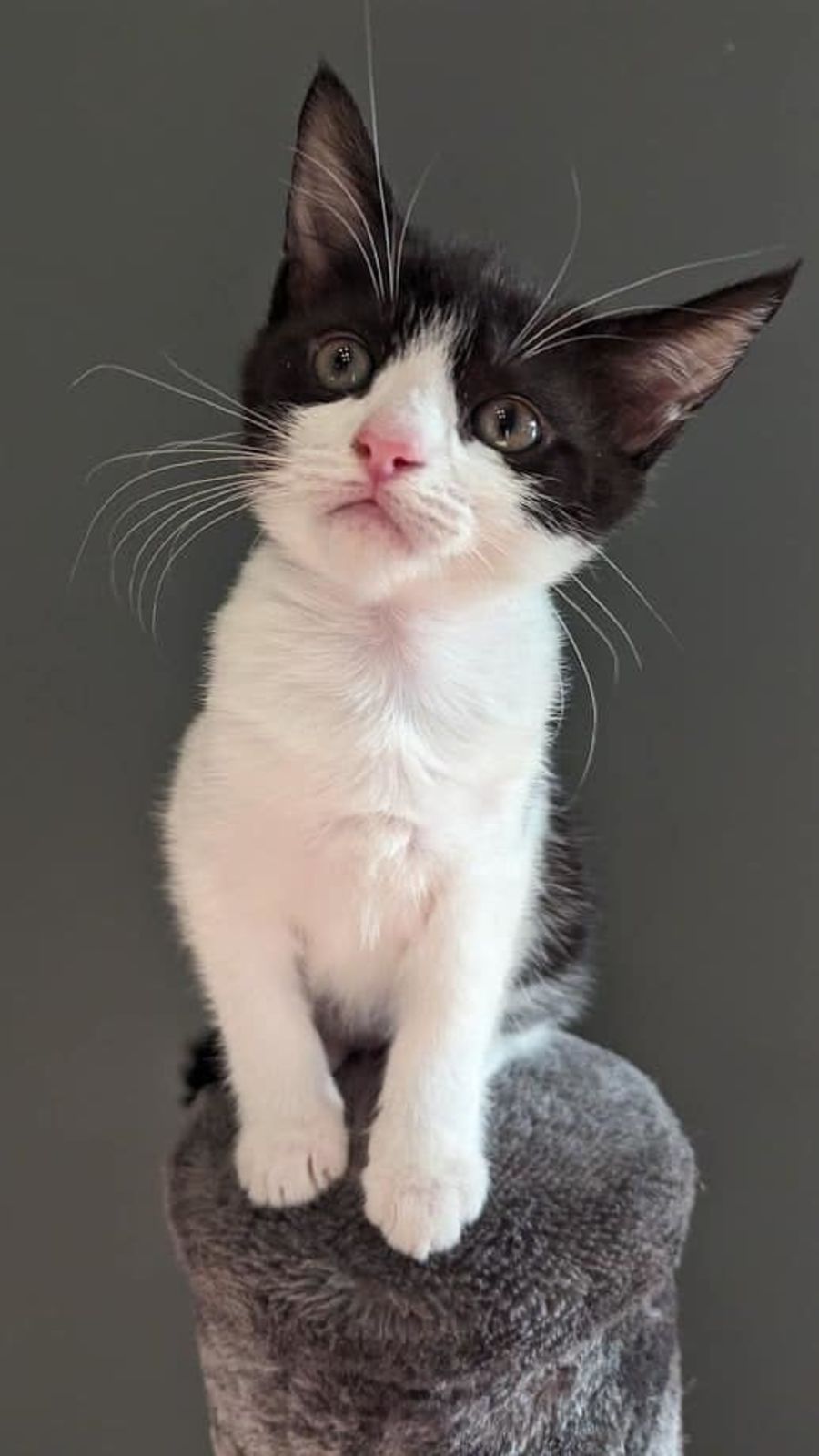 Cleo sings to the tune 'Girls just wanna have fun'. If Cleo was human she would be described as the happiest friend you could ever have. Her skill sets are play, chase, tumble, eat, sleep , play, chase, tumble etc etc. When she pushes her stop button and decides it's downtime, she will seek out the nearest human lap to stretch out on and twitch to her dreams or a comfy kitty friend to spoon with.