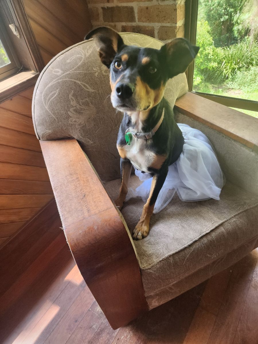 Elsie is a sweet 3yo old staffy x kelpie . She is currently living with 8 host dogs and 3 rescue dogs. Elsie loved coming into the house to have so many dogs to play with. She loves a ball game. Elsie loves all her new friends but happy to be in the back ground. Elsie is a very quiet shy girl. She is very quiet and has lower energy than your typical kelpie. Elsie loves to give kisses and wrap her paws around you. She is very gentle around children.