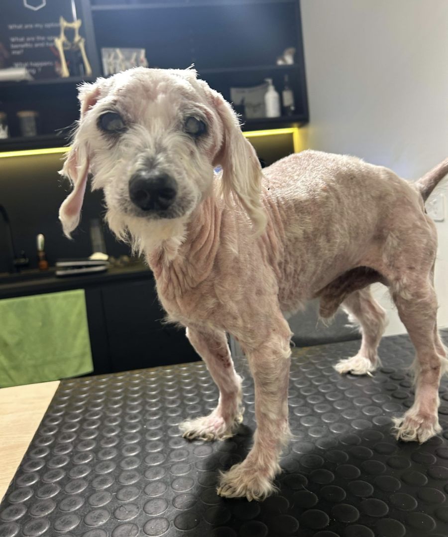 He was covered in fleas, full of worms, needing a groom, his nails had never been clipped, he needed a dental, is deaf, blind..but! He has THE biggest heart to share with a lucky and selfless soul.