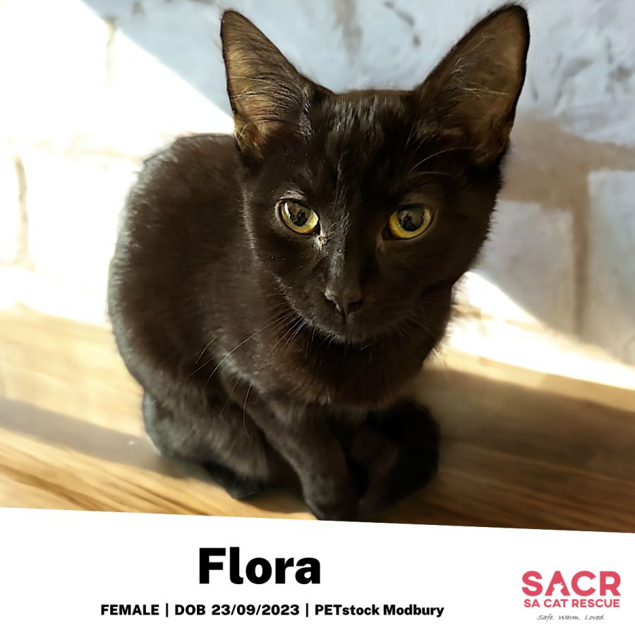 Flora’s adoption fee is $120 which includes desexing, microchipping, parasite prevention, and initial F3 vaccination.