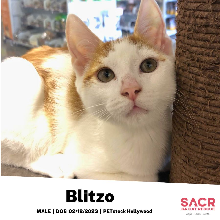 Blitzo's adoption fee is $180 which includes desexing, microchipping, parasite prevention, and initial F3 vaccination.