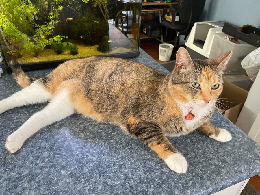 A beautiful calico cat with a warm friendly personality who loves to tell you how she’s feeling.
