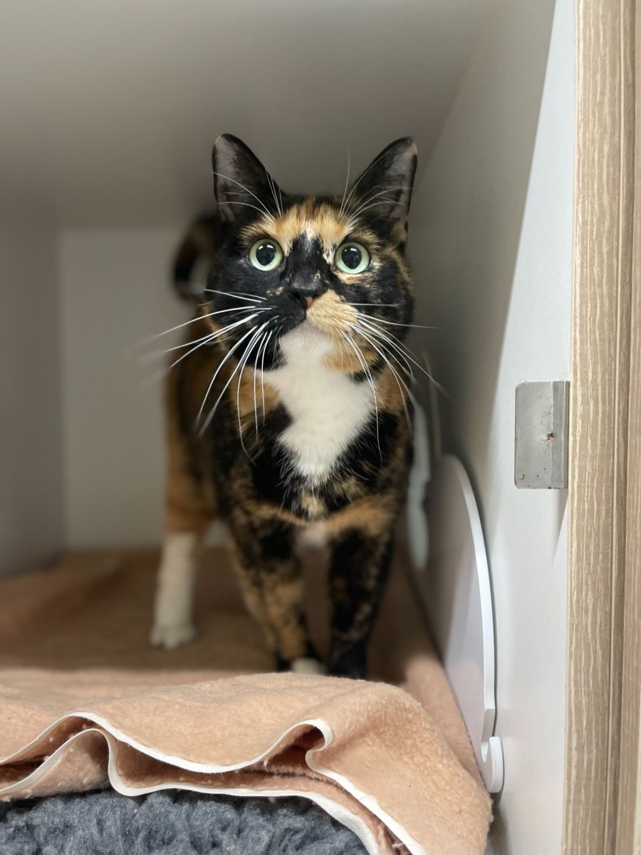 Hazel is a delight to have around! This beautiful cat, with her captivating tortoiseshell markings, is a true beauty.