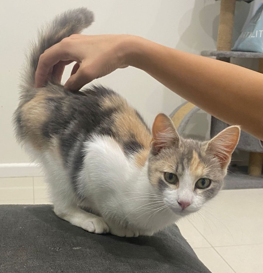 Milkshake loves independent playtime with her toys and scratching post, but don't be fooled - cuddle time is a must! She'll happily shower you with purrs in exchange for endless ear scratches, chin rubs, and maybe even a sneaky butt scratch (it's her favorite!).