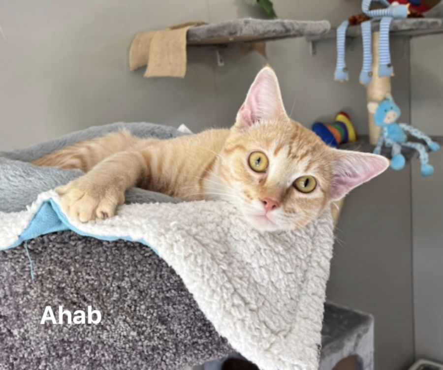 Just like his namesake in 'Moby Dick', searching for an illusive white whale, Ahab is seeking his perfect families! Ahab is bold and curious, always looking for that next adventure. He is fully litter trained and vetted.