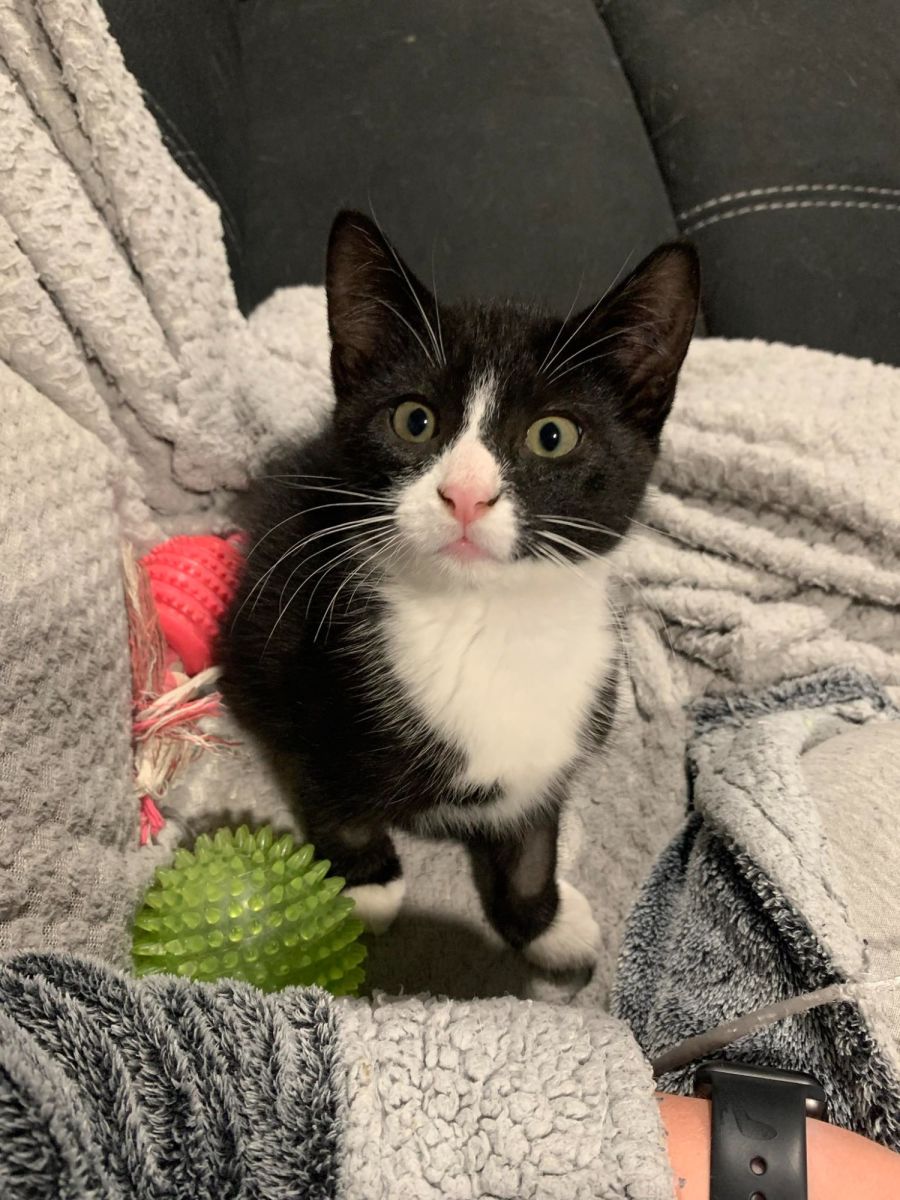 Spencer has been living with his sister, Elle (also available for adoption) and his carers cats and dog, who he has no trouble with. He is happy to play and snuggle with anyone, no matter what species! He is very social and loves to meet new people, not shying away at all. He has not been tested around children but he adapts quickly to new environments, the only concern is sometimes he can play a little rough with teeth and claws, though he is easily redirected from this.