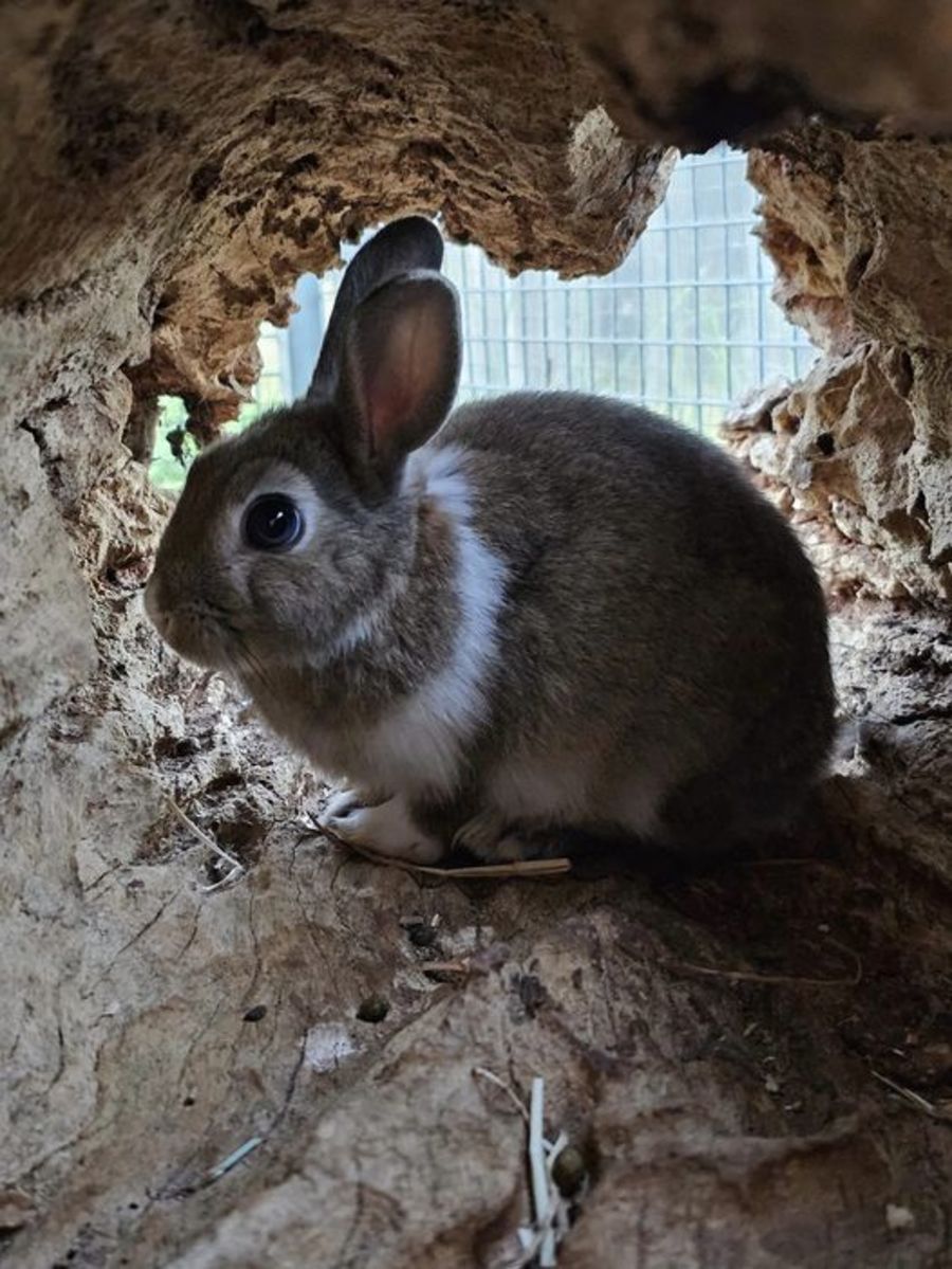 Houdini is a sweet, cute, cheeky little bunny, who from a very young age (1 week old), started escaping from her box & venturing into the pen with the other big rabbits.