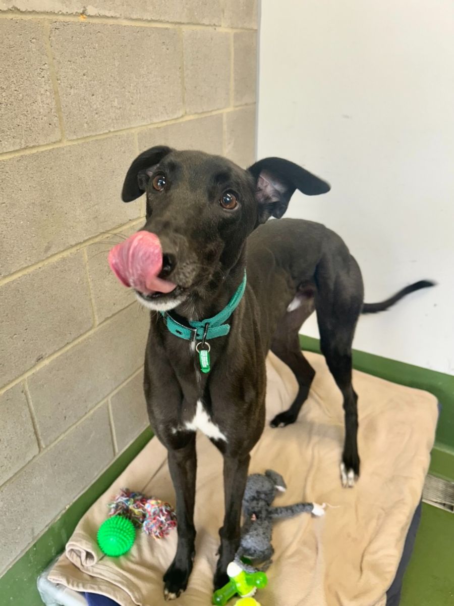 As a Greyhound aka long noodle, Fred thrives in the comfort and safety of indoor living. He's a sophisticated gentleman who enjoys the finer things in life, from leisurely strolls around the house to cozying up on the couch for a snuggle session. While Fred could potentially be rehomed with another dog, he politely declines any offers involving feline companionship - cats are simply not his cup of tea.
