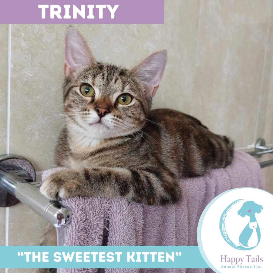 Trinity is a very low maintenance smart and wise kitten who like cuddles and belly rubs.