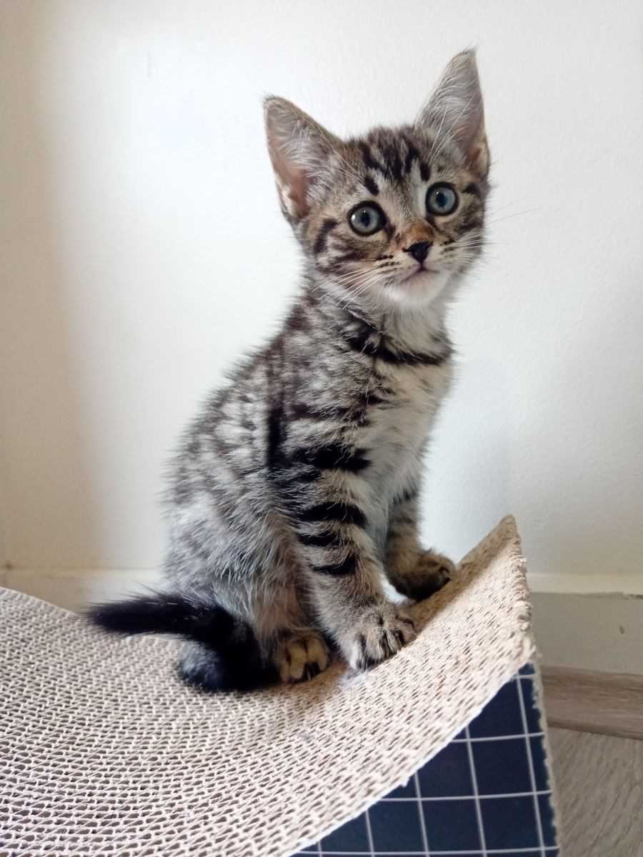 Meet Stevie, a sweet soul with a gentle heart. This petite kitty captivates everyone with her irresistible charm. In a crowd of her playful siblings, Stevie shines with her peaceful nature.