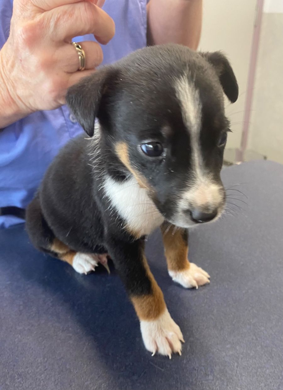 This striking young fellow is Ricky, a Cattle Dog pup born 6 February 2024. He's part of a litter with 8 who came to us for care.