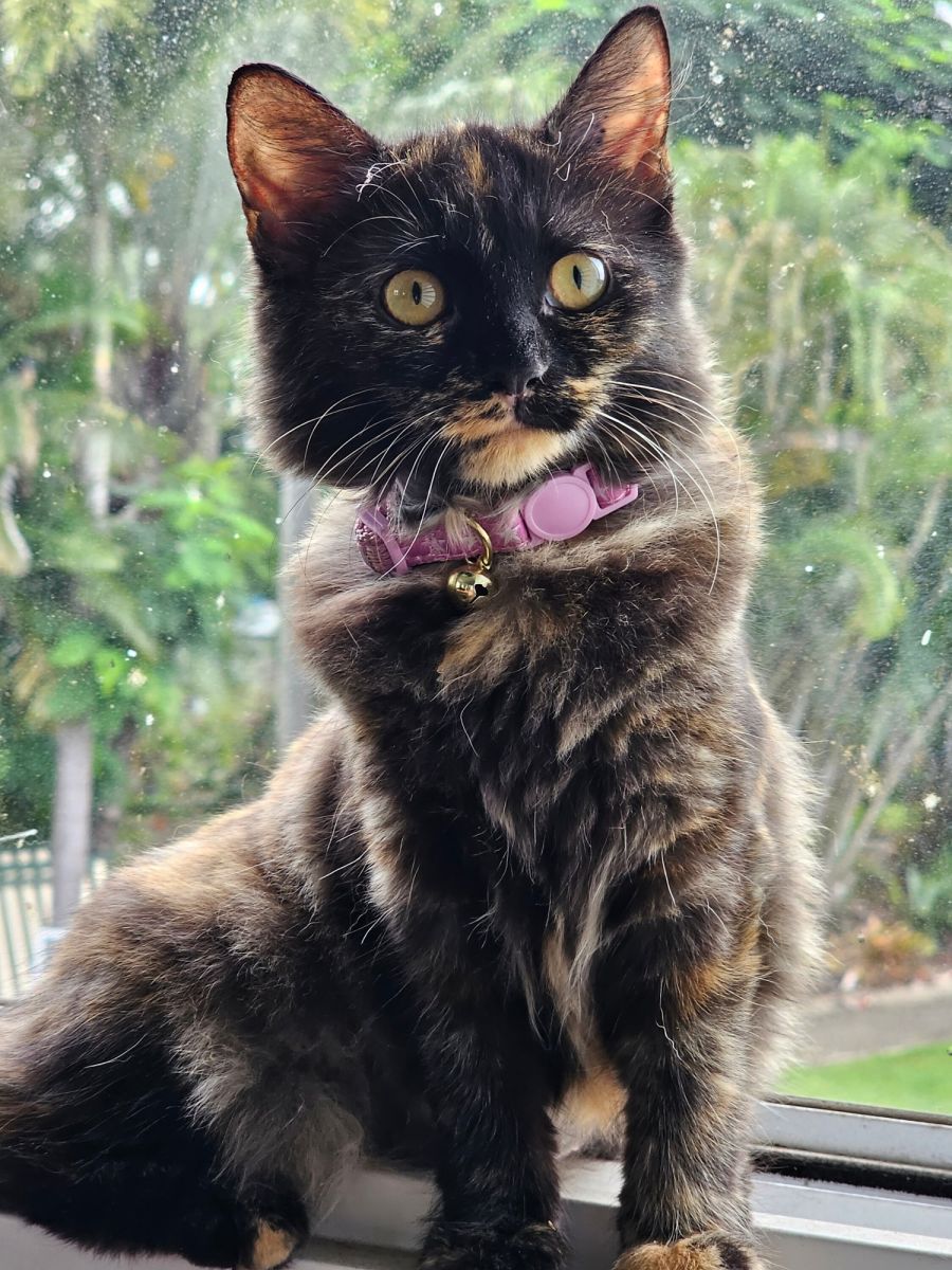 Meet Truffles, an adorable little lady who is a domestic medium haired tortoiseshell. Truffles is the sweetest little girl, she is playful, inquisitive and loves to zip around the house. Always looking for a tight cosy spot to curl up in. She is fine and delicate with a soft purr and quiet voice. Her energetic antics will bring endless joy to your home. Truffles loves to sleep right by your side, she will follow you around the house or happily entertain herself. Currently living with an older male cat and two large dogs she gets along with all of them. Adopt this little lady and experience the love and happiness she will bring into your life!