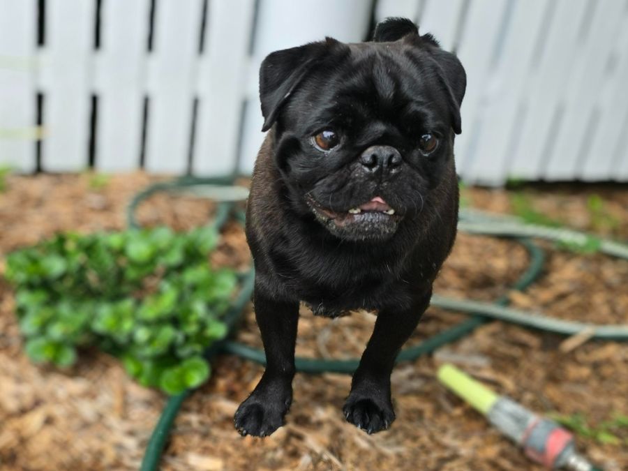 He's got a beautiful temperament, he’s friendly with both people and other dogs, making him a delightful companion. He’s well-mannered, knowing to sit and wait for his meals, however, like so many pugs, he does have a cheeky side, especially when it comes to snacks. He can be a bit snappy with treats and doesn’t like other dogs around his plate while eating.