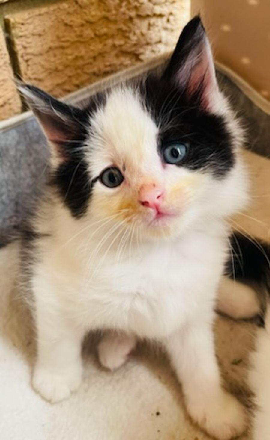 Penne is a confident, sweet little panda kitten. Raised in a loving home, Penne loves to play with her siblings and is not shy of a pat!