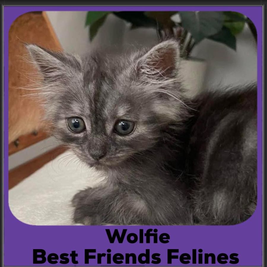 Heyyyyyyy, I’m Wolfie. I had a pretty rough start to life and was the smallest of my siblings. Now? I’ve grown in size AND in purrrr-sonality. I’m a super playful little chap who’s as cute as can be with my ‘just got outta bed’ hair do.