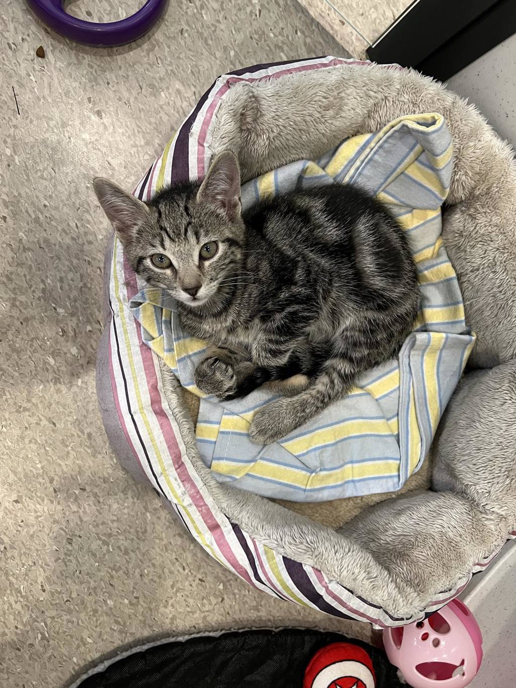 Hey there, I'm Maurice Gibb. I'm a friendly and affectionate kitten who would suit most homes! My playful paws are always ready to pounce on anything that moves. I love playing with wand toys and mysterious shadows on the wall! When I'm finished playing, I love nothing more than finding a warm lap to curl up in.