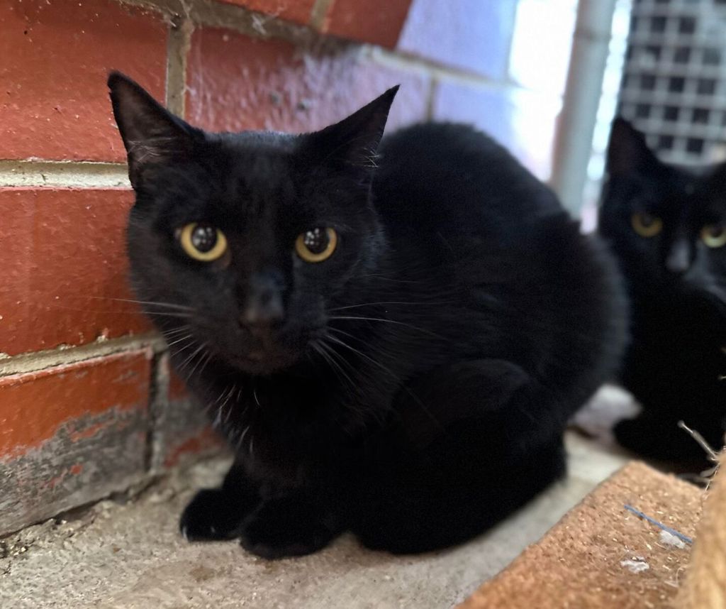 Meet Mr. Jones, Eva, Elephant, and Murphy - four delightful felines whose gentle spirits shine despite the sad circumstances that led to their surrender. Each adorned with matching black coats and white chest hairs, they exude elegance and charm. They do not need to be adopted together, as four is a lot of cats!