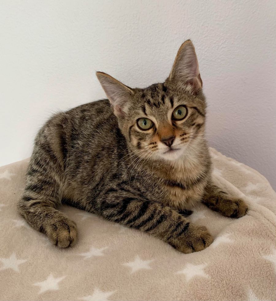 Dorian is a very sweet and curious little boy, who will start purring when he sees you. He loves playing with his sister Ivy and loves to snuggle up to you. He loves a good pouncing game too if you wiggle your toes. He is just adorable!
