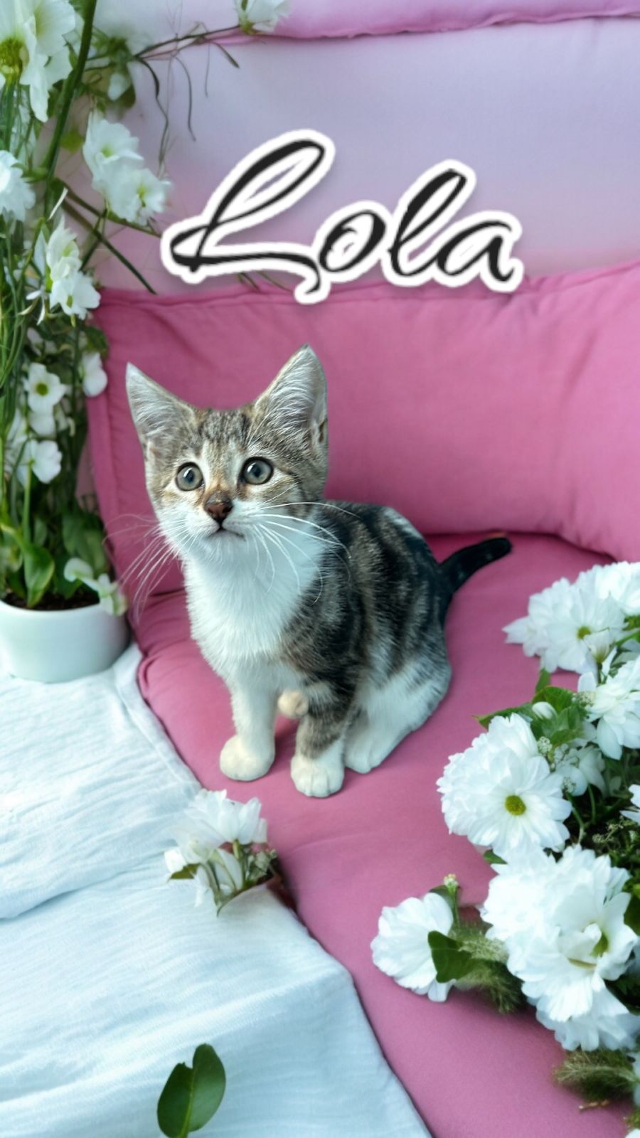 In sum, Lola wraps up feline charm and affection into a delightful furball, and she is ready to be a beloved part of your family.