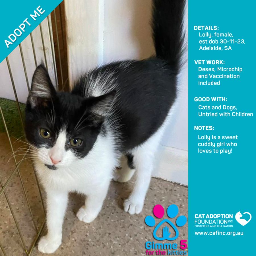 To adopt this kitty please contact Sayla on 0422 652 837 or email us at info@cafinc.org.au.